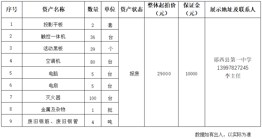 1.湖北省十堰市鄖西縣第一中學(xué)報廢資產(chǎn):