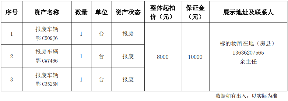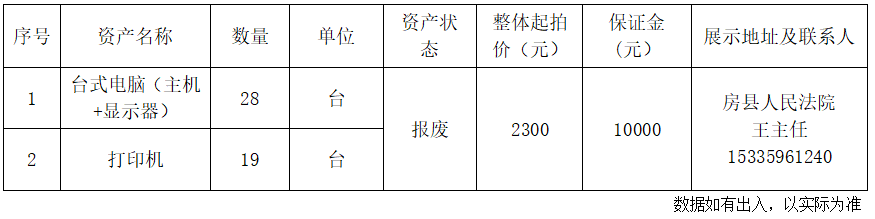 2.湖北省十堰市房縣人民法院報廢資產(chǎn):