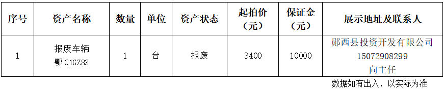 1.湖北省十堰市鄖西縣香口鄉(xiāng)人民政府報廢資產(chǎn):