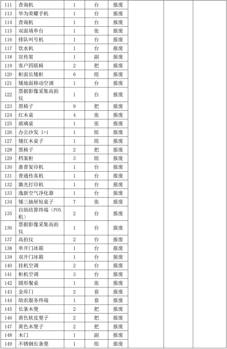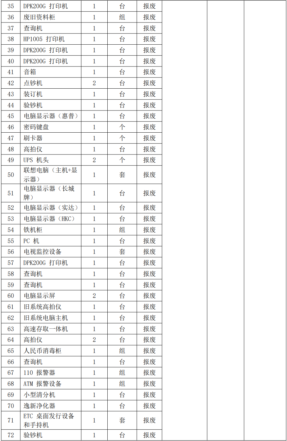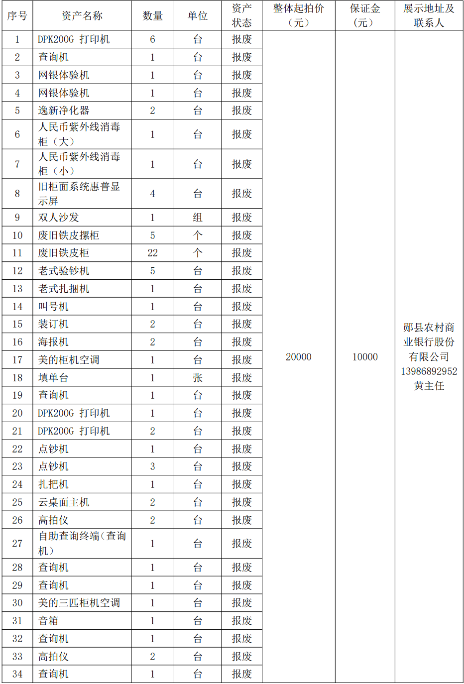 3.湖北鄖縣農(nóng)村商業(yè)銀行股份有限公司報廢資產(chǎn):