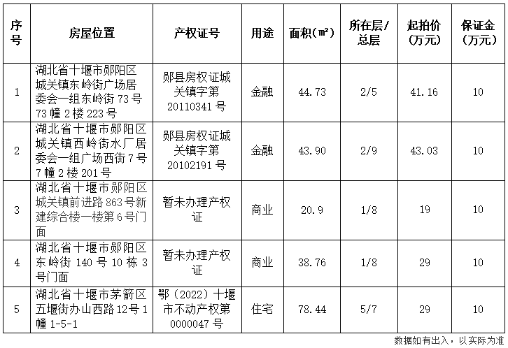 二、有意者可登錄中國拍賣行業(yè)協(xié)會網(wǎng)絡(luò)拍賣平臺或湖北鄖興拍賣有限公司網(wǎng)站(http://www.xyjrsh.com)查閱拍賣文件,并在2025年11月13日17時前將競買保證金繳至湖北鄖興拍賣有限公司賬戶(戶名:湖北鄖興拍賣有限公司,賬號:1810819719020089825,開戶銀行:中國工商銀行十堰柳林支行)后,憑有效身份證明和保證金繳納憑證辦理競買登記手續(xù)。未成交者保證金如數(shù)返還,不計利息。