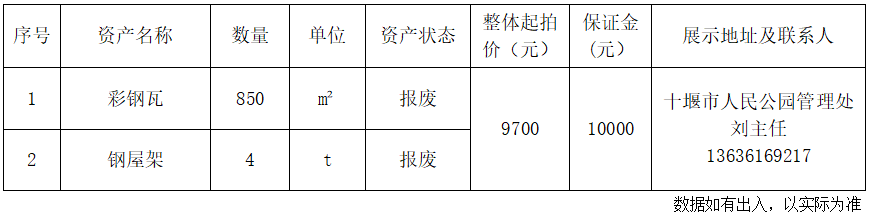 1.湖北省十堰市人民公園管理處報廢資產(chǎn):